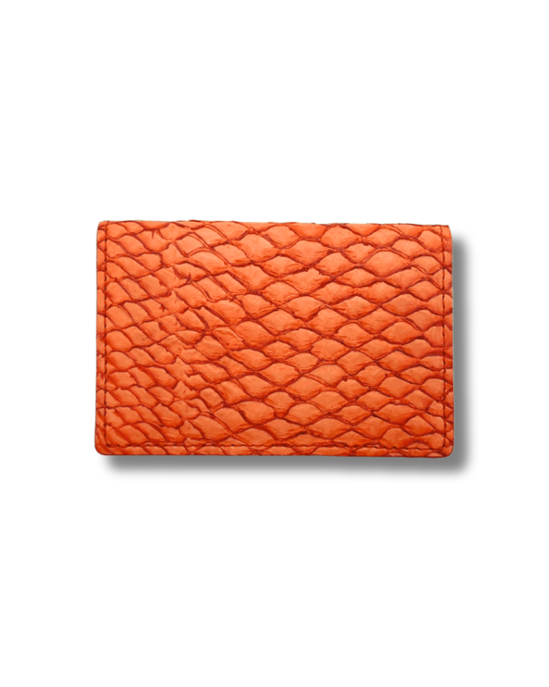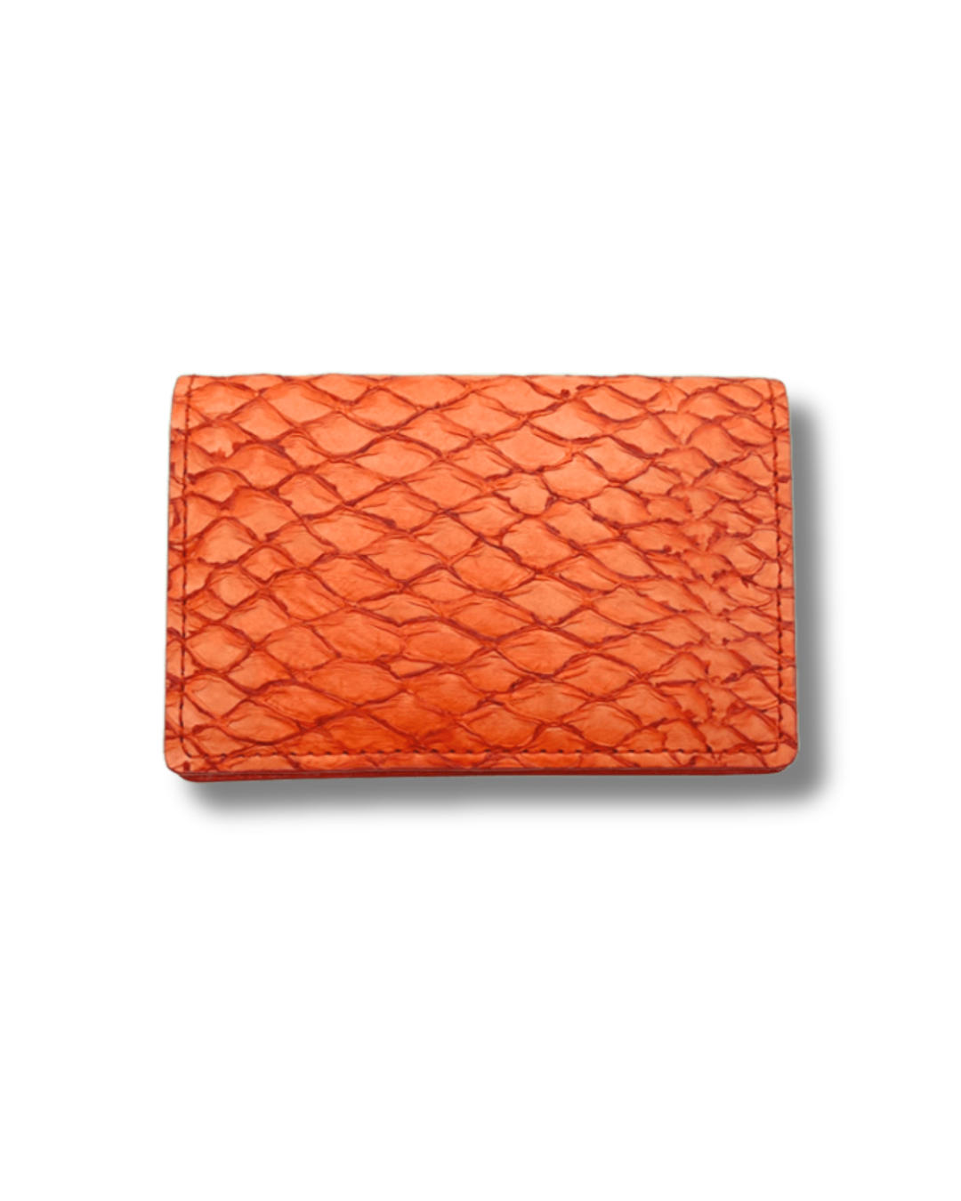 外装はタイ革で仕立てており、ベーシックなスタイルにユニークさを織り交ぜた名刺入れです。底マチがついているため、収納性に優れています。タイ革のグラデーションのついた大きな鱗模様が魚らしい躍動感を与えます。